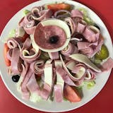 Half Tray of Spaghetti with Sauce. 8 Meatballs. Large tossed salad. 4 Dinner Rolls. No add ons or substitutions.